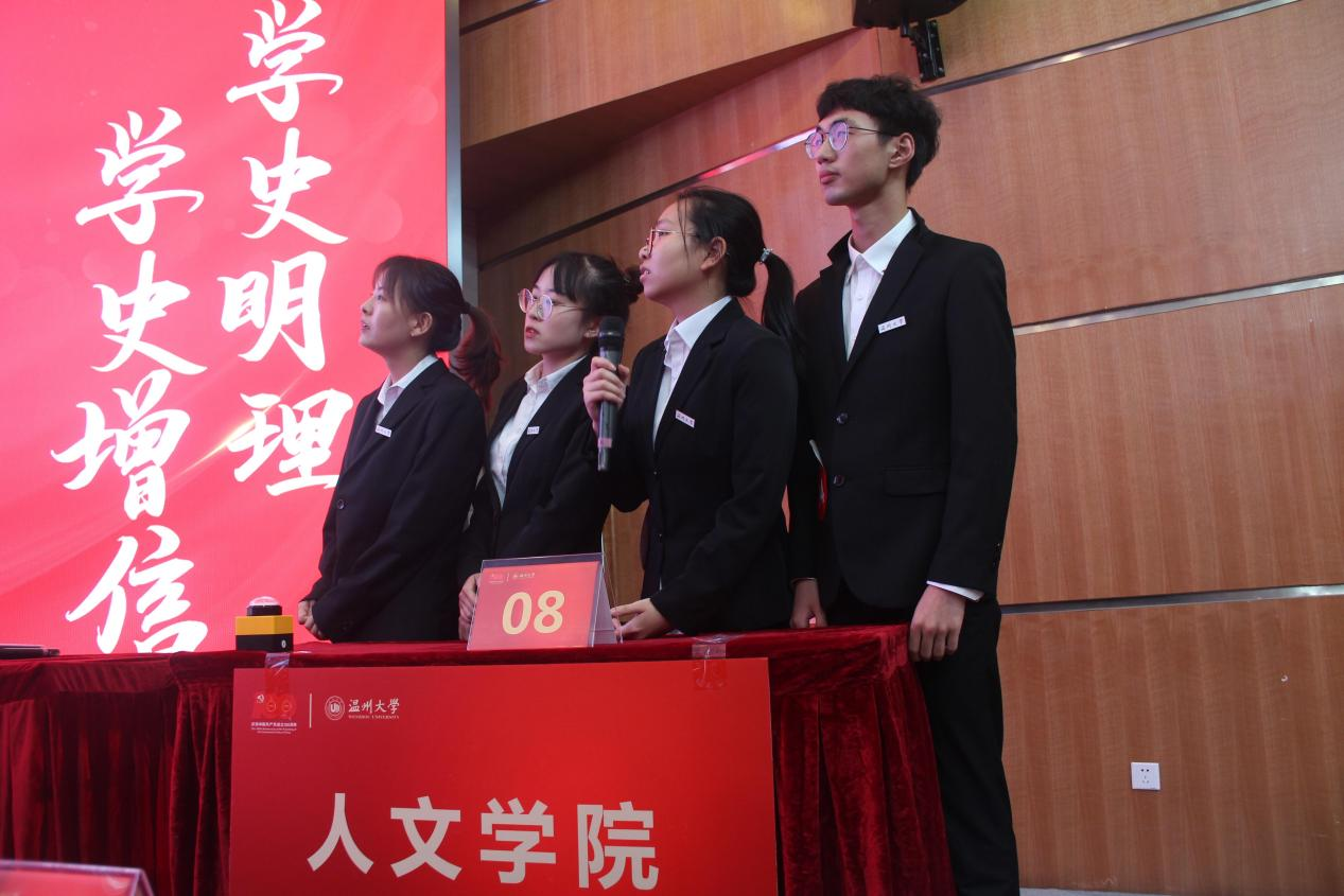 据悉,决赛以百年党史为内容,设置了小组赛、抢答赛和对抗赛三个环节。共有来自9428cn太阳集团古天乐、马克思主义学院、商学院、教育学院、化学与材料工程学院、生命与环境科学学院、法学院、计算机与人工智能学院等八支代表队进入决赛。整个决赛过程中,各位参赛选手们冷静思考、沉着应对、密切配合,将丰富的知识储备与手速完美结合,各代表队你追我赶,将比赛一次次推向高潮,为观众呈现了一场精彩的党史知识大比拼,充分展现了9428cn太阳集团古天乐学子们良好的理论知识水平和过硬的思想政治素质。
