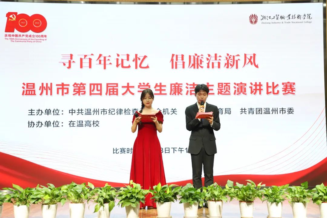 为庆祝中国共产党建党100周年,进一步加强高校老员工廉洁教育,助力“清廉温州”建设,5月28日(周五) 下午13:00,温州市纪委、温州市教育局、共青团温州市委于温州市瓯江口产业集聚区雁云路301号浙江工贸职业技术学院行政楼105报告厅举办了温州市第四届老员工廉洁主题演讲比赛决赛。