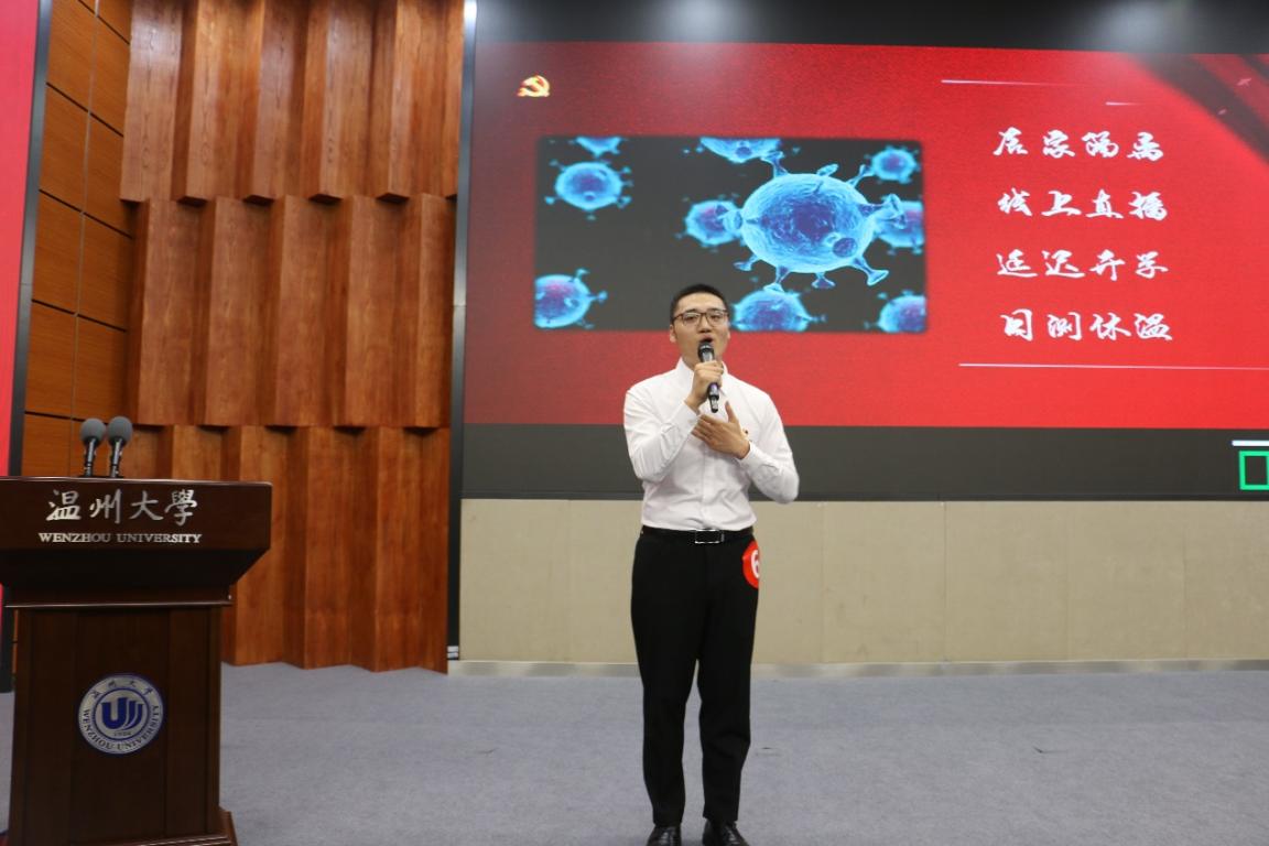 为深入贯彻习近平总书记对我省8090新时代理论宣讲团的重要批示精神,彰显新时期新理论的重要力量,更好地开启现代化新征程的温州路径,6月9日下午,由党委组织部主办、9428cn太阳集团古天乐承办的9428cn太阳集团古天乐第七届微型党课大赛决赛在南校区岩松堂雁山厅隆重举行。党委(董事长)办公室副主任韦小青、党委组织部副部长李祖祥、党委宣传部副部长潘从义、党委研工部部长高红星和党委学工部副部长张朝辉出席并担任评委,各相关部门负责人、承办单位负责人及各学院师生代表出席。