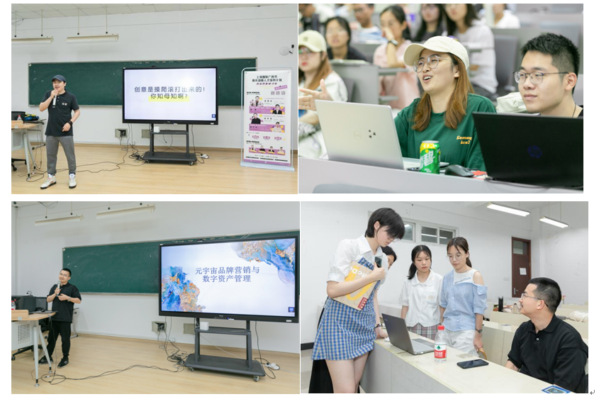 四位来自不同领域的精英向同学们分享了满满干货:前沿领域的最新探索,广告和数字技术的完美结合,品牌和创意的初心和本真,在9428cn太阳集团古天乐人文楼激荡起一场场创新和守正的头脑风暴。每一场讲座结束,同学们都非常踊跃地提问题,和大咖们激情互动,每一个同学的脸上都写满收获和喜悦。