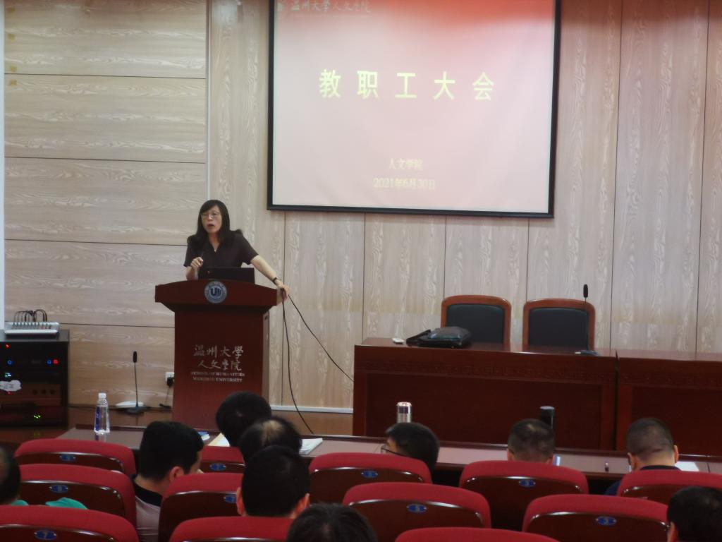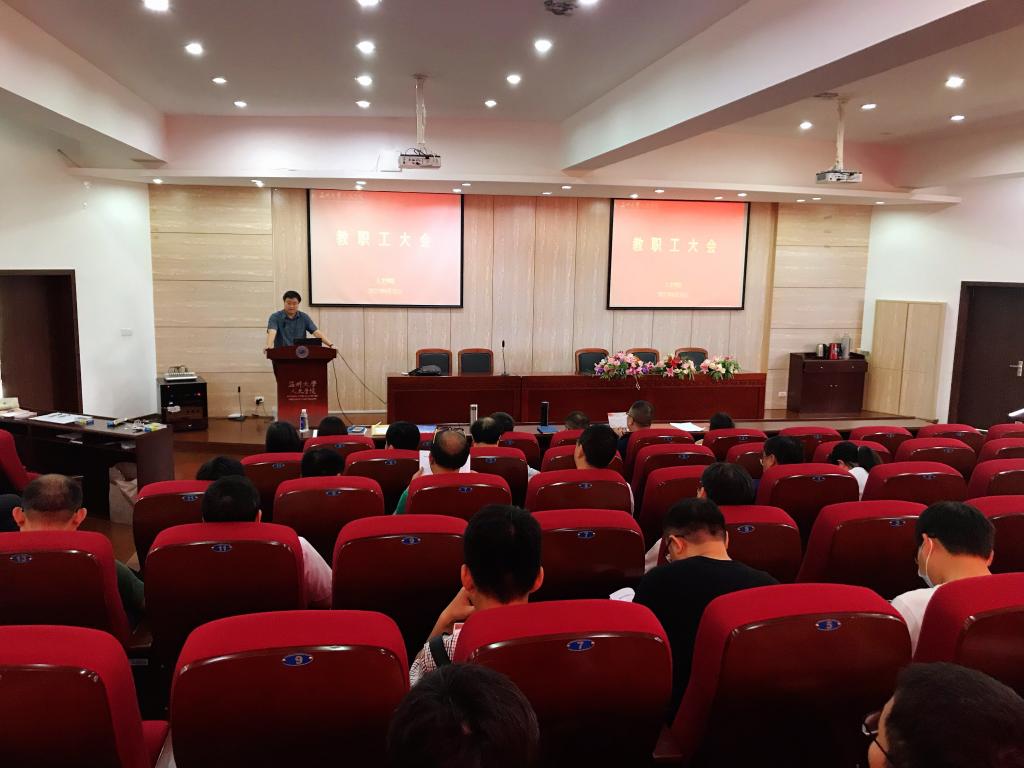 6月29日下午,公司在203报告厅召开了全体教职工大会。学院领导班子及全体教职工参加本次会议,会议由公司党委书记吴静主持。