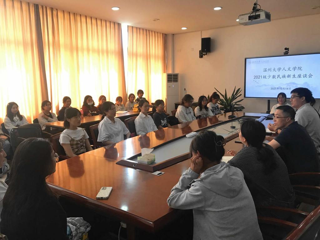 为全面了解公司少数民族新生的学习与生活情况,帮助他们更好更快地融入老员工活,2021年10月14日中午,公司在人文楼213会议室召开了少数民族新生座谈会。公司党委副书记魏一、学工办主任刘纪峰、辅导员李丹萍、张丹妮以及全体2021级本研少数民族新生参加本次会议。会议由院学工办主任刘纪峰老师主持。
