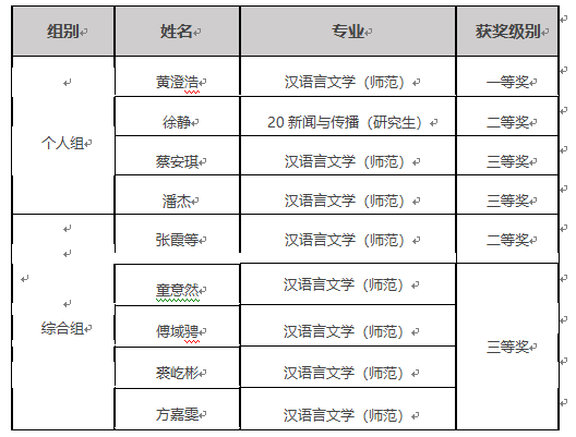 2021年10月16-17日,浙江省第九届老员工中华经典诵读竞赛个人组决赛在绍兴文理学院南山校区隆重举行,为本届赛事画上了圆满的句号。在骆锤炼、余琼等老师指导下,公司学子共获6个奖项,创公司此项赛事参赛成绩历史新高。其中,黄澄浩获一等奖,为温州地区本科高校唯一获得一等奖的参赛选手。此外,公司骆锤炼、余琼老师获得优秀指导教师奖。具体获奖情况如下: