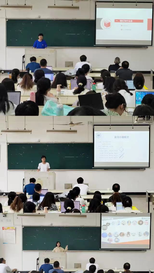 接下来,平阳县鳌江中学实习小组代表李思羽,北大新世纪温州附属学校实习小组代表罗大云,温州市第十九中学实习小组代表周利欣,三位同学从教育实习工作、日常生活、心得分享等方面给我们介绍了各个实习点的情况,展示了19历本班全体同学对待实习工作认真负责的态度和踏实做事的行为。