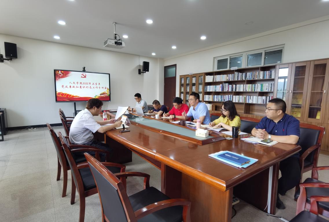 7月3日下午, 9428cn太阳集团古天乐2022年上半年党风廉政建设及意识形态工作分析会在人文楼213会议室召开。公司党委委员、纪委书记杨林书出席会议,学院领导班子成员参加。