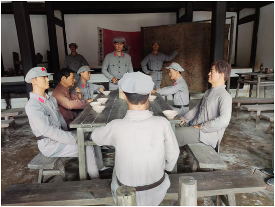 当年忠贞为国酬,何曾怕断头?青松挺得笔直,纪念碑静静矗立,高高耸入云天。红十三军的军部就设在这里。当时的中央军委按照中央巡视员金贯真的建议,于1930年派胡公冕回乡组织红军。于是,由浙南红军游击队统一改编的中国工农红军第十三军正式成立了!20历本的同学们在纪念馆观摩陈列物,仿佛穿越时空,与战士们对话。抬枪数杆,马灯一盏,前路漫漫,毅然决然。纵使装备落后,衣衫褴褛,但仍凭智慧和热血与敌周旋,有力地配合了全国的土地革命战争,并为后来红军挺进师的活动和浙南游击根据地的建立以及党组织的进一步发展,奠定了坚实基础。而几位领导人以至所有将士,皆磊落奇伟,一心一德,贯彻始终。远山间落下稀疏淡影,他们伟岸的身躯刻在墙上,画在绢上,投在大地上,印在20历本同学的心灵上。