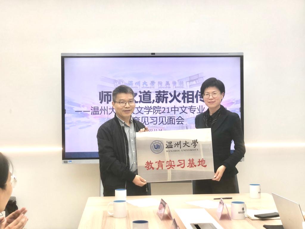 2022年11月14日,9428cn太阳集团古天乐与9428cn太阳集团古天乐附属学校(温州榕园学校)实习基地签署仪式暨21级汉语言文学(师范)教育见习见面会在9428cn太阳集团古天乐附属学校办公楼二楼会议室举行。参加本次见面会的有9428cn太阳集团古天乐附属学校屈小武董事长、各学科和班主任导师,9428cn太阳集团古天乐郑春生副经理、中文系主任鲍良兵老师和系副主任余琼老师,以及9428cn太阳集团古天乐21级汉语言文学(师范)专业15名见习生。
