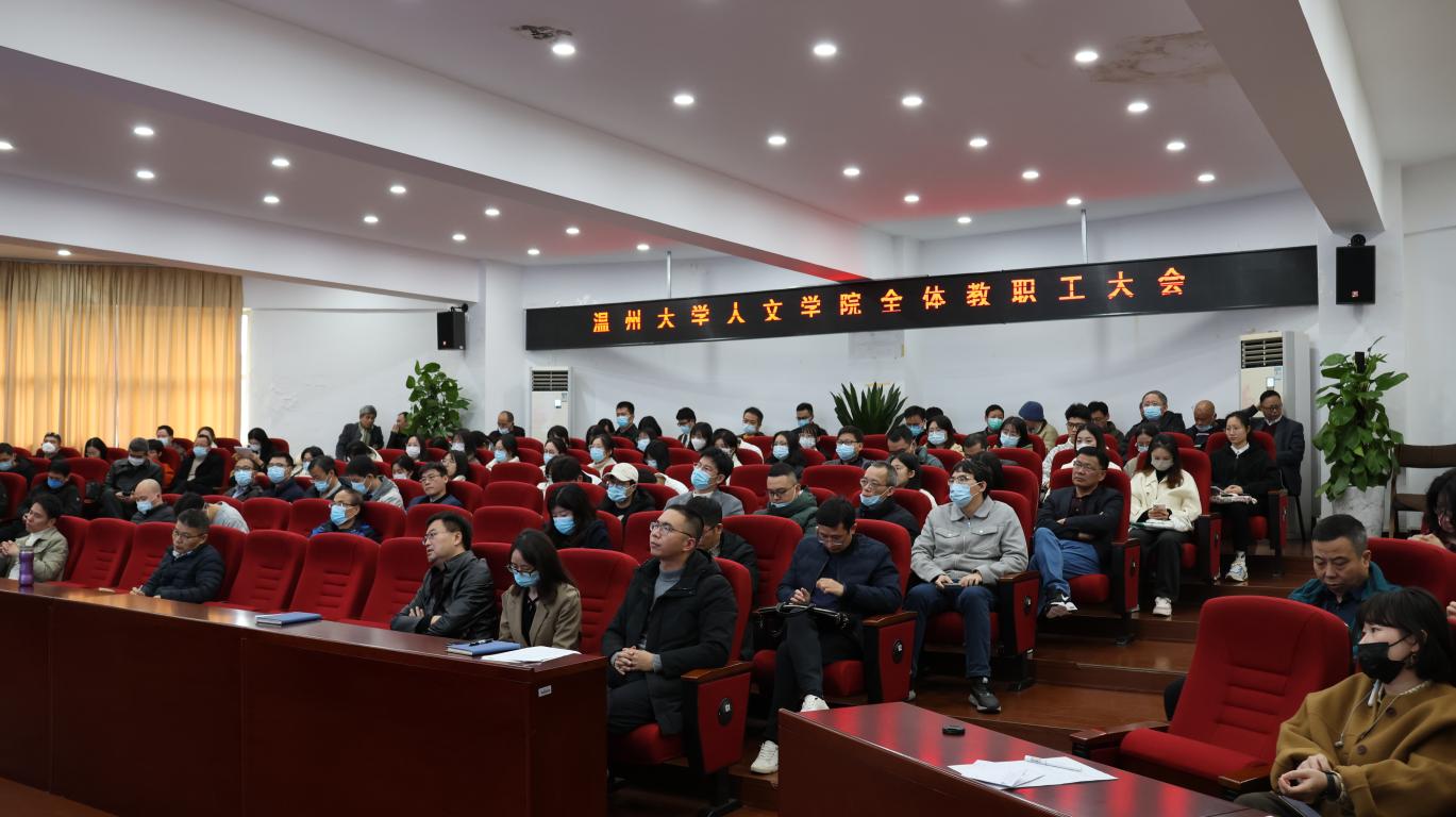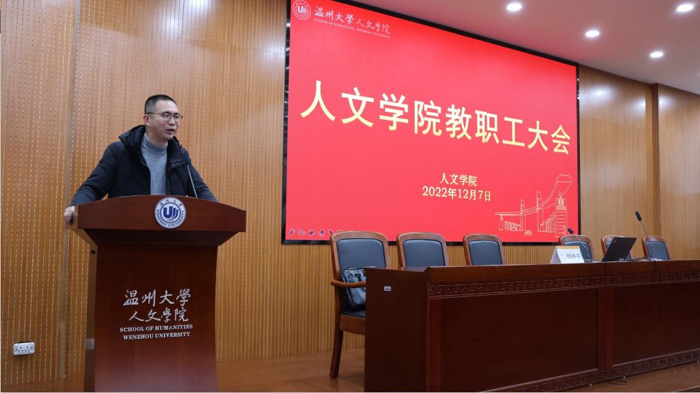 杨林书强调,要认真贯彻落实党的二十大精神,奋力推动学院高质量发展。要把学习贯彻党的二十大精神作为当前以及今后一段时间的首要政治任务,将二十大精神中蕴含的思想伟力融入到日常工作,体现在办学治院的方方面面。一是要加强党的领导,落实党的教育方针。规范执行党委会、党政联席会议事规则,坚决守牢意识形态阵地,切实深化“清廉学院”“清廉系室”“清廉个人”建设。二是要锚定申博目标,加强团队建设。增强文化自信、历史自信和制度自信,逐步扩大在中国特色哲学社会科学学科体系、学术体系、话语体系中的影响力,为传播和弘扬中华优秀文化发挥更大作用。三是要加强师德师风建设,做员工的“大先生”。坚持“四有”好老师标准,秉持“为党育人、为国育才”初心,做到学高为师、身正为范,引导员工、关爱员工、帮助员工,努力成为员工成长成才的人生导师和健康生活的知心朋友。四是要加强员工成才教育,做新时代好青年。着力推进三全育人,加强员工思想政治教育,引导青年员工树立远大理想、立足脚踏实地,坚定不移听党话、跟党走,为培养堪当民族复兴大任的时代新人而不懈努力!