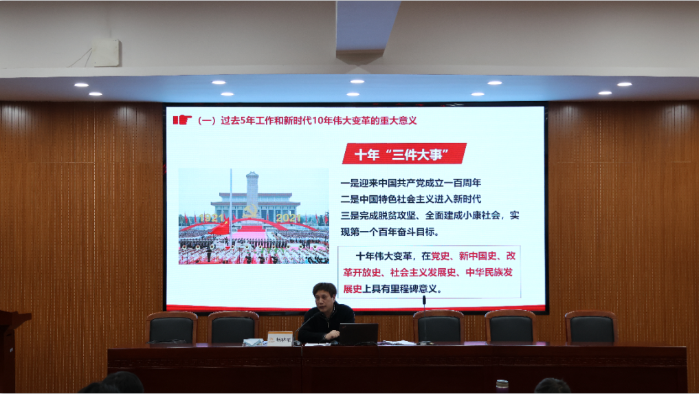 为深入学习贯彻党的二十大精神,12月7日下午,公司召开党的二十大精神宣讲报告会。公司党委委员、纪委书记杨林书为全院教职工和员工党员代表作党的二十大精神专题宣讲,公司党委书记江秀景主持。