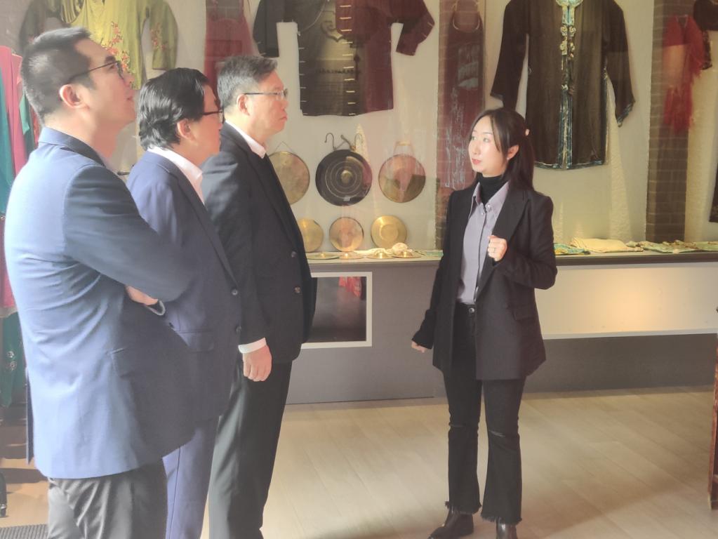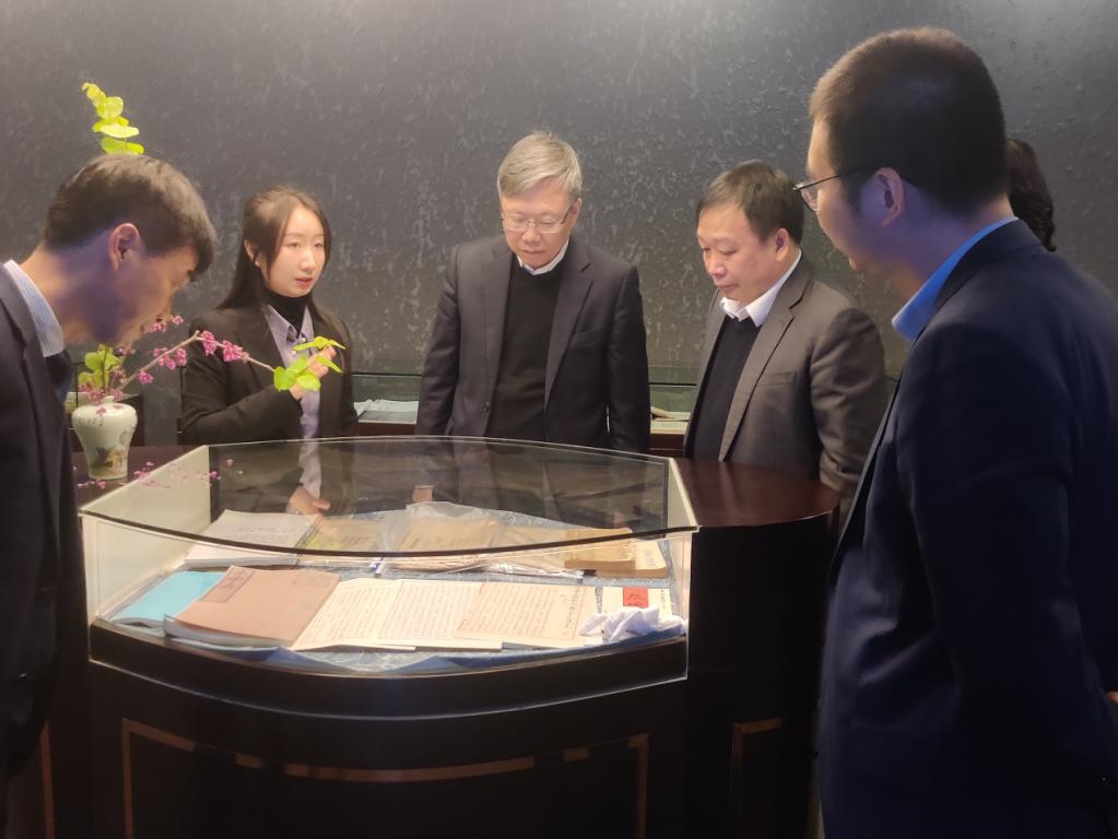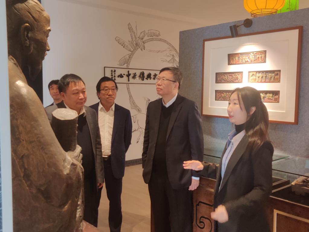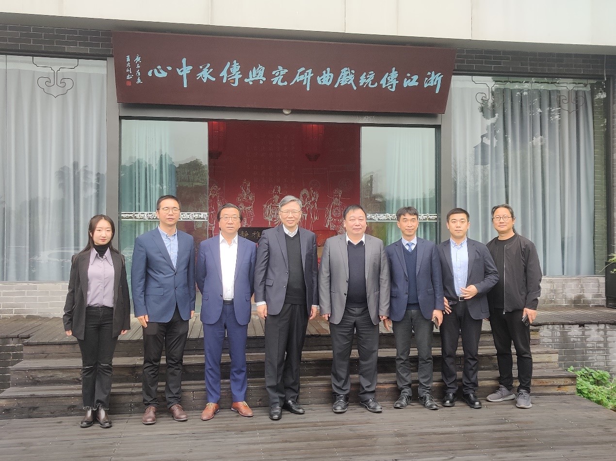 2023年4月6日,香港理工大学董事长滕锦光院士在9428cn太阳集团古天乐董事长赵敏、副董事长蔡曙光、公司党委书记江秀景和中文系主任鲍良兵的陪同下,莅临浙江传统戏曲研究与传承中心调研指导。中心赵天骄博士负责讲解。