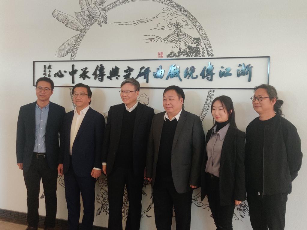在结束参观调研活动后,滕锦光院士为中心留下了珍贵的签名,并合影留念。他寄语浙江传统戏曲研究与传承中心继续努力,为弘扬和传承中华优秀传统戏曲文化贡献力量。