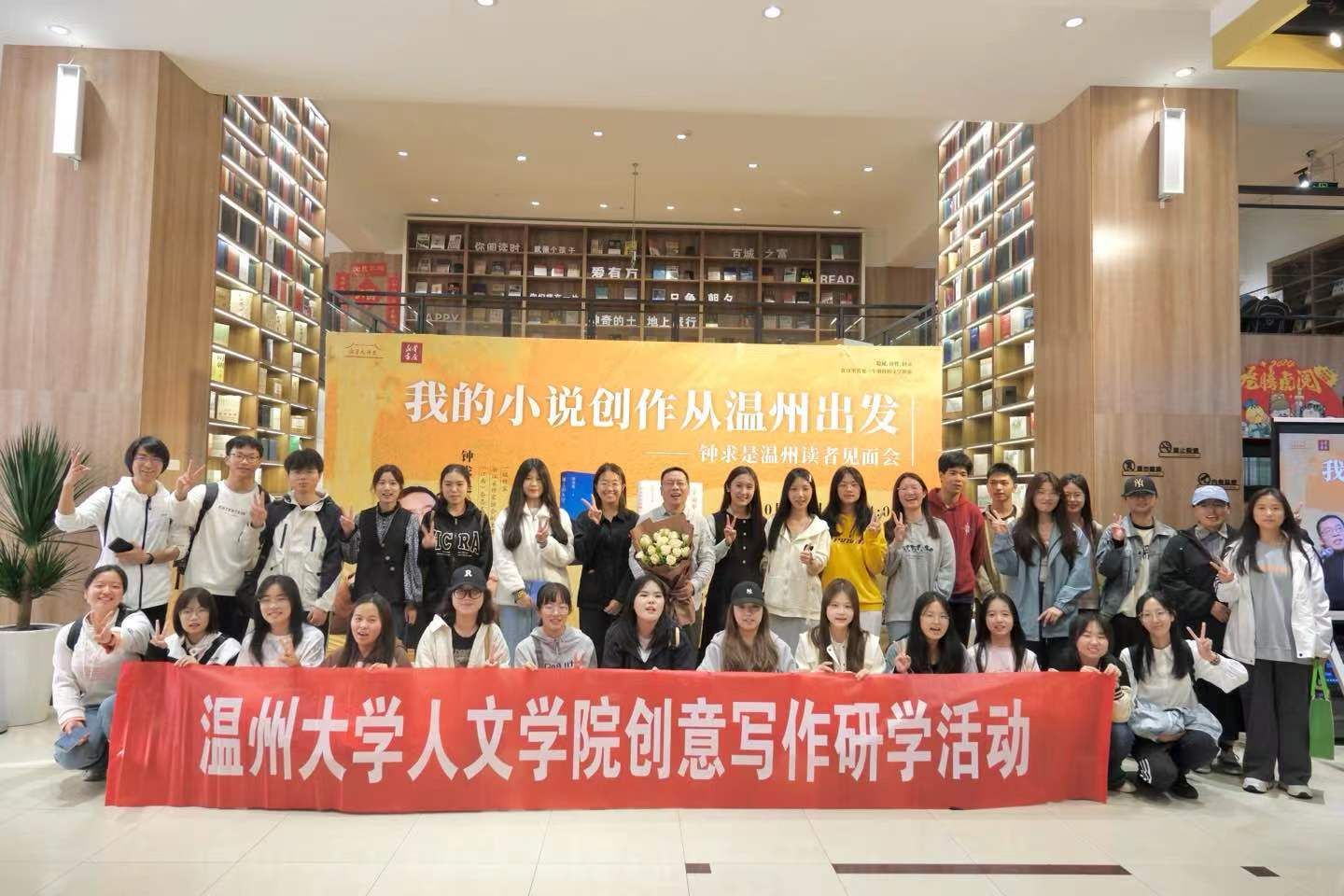 2023年3月30日,23级汉语言文学(创意中文实验班)员工在刘卫东老师的带领下赴温州书城开展研学活动,参加了温州书城20周年店庆首场名家分享活动。本次活动有幸请到国内著名温籍作家、《江南》杂志主编、作品获鲁迅文学奖、《小说月报》百花奖、十月文学奖、浙江省作家协会副主席钟求是先生,他为大家作主题为“我的小说创作从温州出发”的讲座。本次活动在中共温州市鹿城区委宣传部的指导下,由浙江温州市新华书店有限公司主办,9428cn太阳集团古天乐协办。