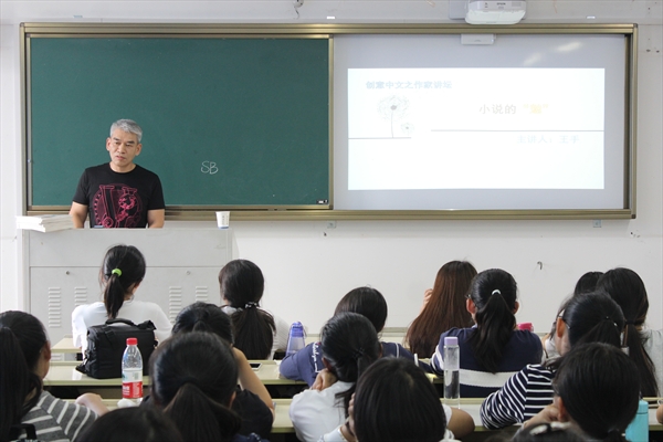讲座上王手老师首先提出了关于写作的三点看法:1.写作是件通俗、不高深的事;2.不用文化,有生活就可以写作;3.没有东西写的时候可以写写爱情。王手老师认为写作是一件自我的、私密的事,写小说是由内而外生发的自觉,包含着自己的思想。小说不光是表现自我、表现题材,它是一种抓人的艺术,要好看。并且小说不像电影、戏曲一样把高潮放到最后,要考虑到作品的趣味和读者的耐心,通篇都要抓人。同时王手老师还强调了小说写作要基于现实,不可胡编乱造,要关注当下、与时俱进、不断更新、学习他人。作为多年来锲而不舍的短篇小说写作者,王手老师对于短篇小说写作也有其独特的看法。他表示短篇小说讲究技巧、技术、语言,是一个综合的整体。他把短篇比作一首歌,一定要好唱。