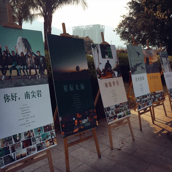 除此之外,广告学专业也借这次招生测试机会,向考生和家长介绍自己的专业教学特色和成果。在家长休息室播放专业介绍和员工成果、制作大幅的广告展版,分发员工自己精心制作的明信片。