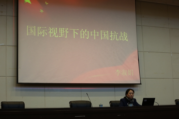 李淑娟教授是黑龙江省级领军人才梯队带头人,省级优秀中青年专家。2011年教育部新世纪优秀人才,2013年龙江学者特聘教授,国家百千万人才。李教授主要研究方向为东北乡村社会史研究和近百年黑龙江社会变迁史研究等。主持国家社会科学基金重点项目《满铁调查报告与近代东北乡村社会研究》、国家社会科学基金项目《日本殖民统治对东北农民生活影响实证研究》等多项研究课题。在讲座中,李教授以自身多年来对日据东北的研究经历为我们讲述了她个人对于抗日战争的认识。近代以来,日本对于中国的侵略野心蓄谋已久,李淑娟教授从甲午战争、日俄战争、九一八事变到七七事变等一系列侵略事实为我们深刻剖析了日本军国主义的历史根源。此外李教授通过对中国抗战在世界反法西斯战争中贡献的追忆,各国对中国抗战的高度评价,对在场师生正确认识中国抗战的国际地位有重要意义。李淑娟教授讲座的尾声部分由员工提问,李教授一一耐心做了解答。