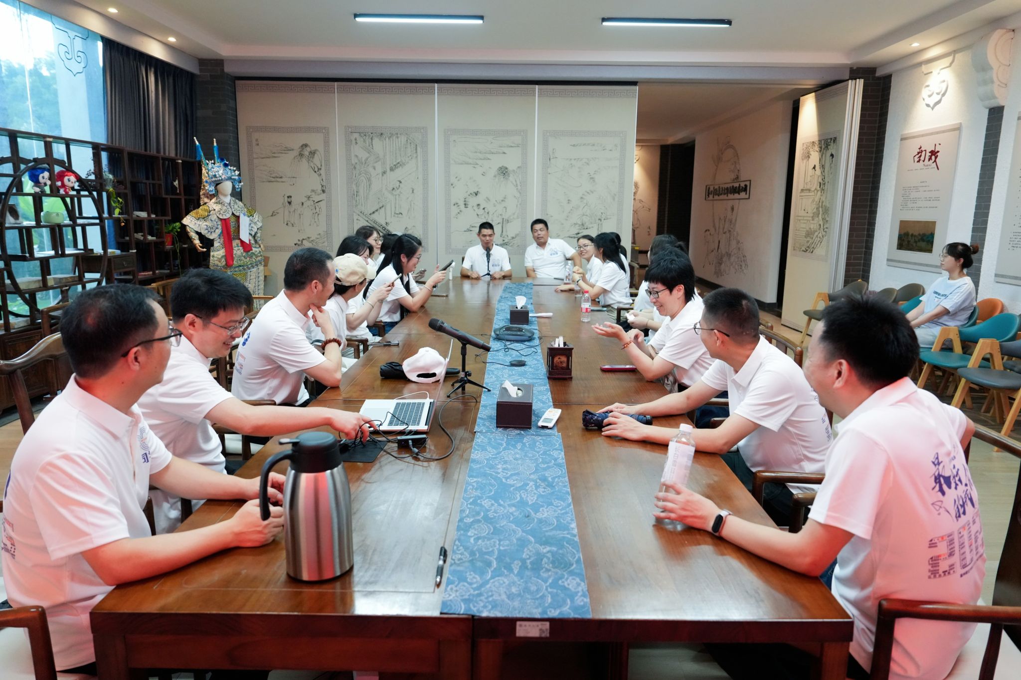 座谈会在浙江传统戏曲研究与传承中心会议室举行。员工胡志锋主持,他首先介绍了班级同学目前的分布情况,表达了对未能到场同学的挂念,并回顾了上一次聚会的难忘情景。大家共同感慨时光飞逝,当下每一次相聚都显得尤为珍贵,并约定未来聚会尝试更灵活自由的形式。在自由交流环节,员工们围坐一起,分享各自毕业后的工作经历、家庭生活近况以及对人生的感悟。话题常常引向对员工时代的怀念,交流氛围温馨而融洽。