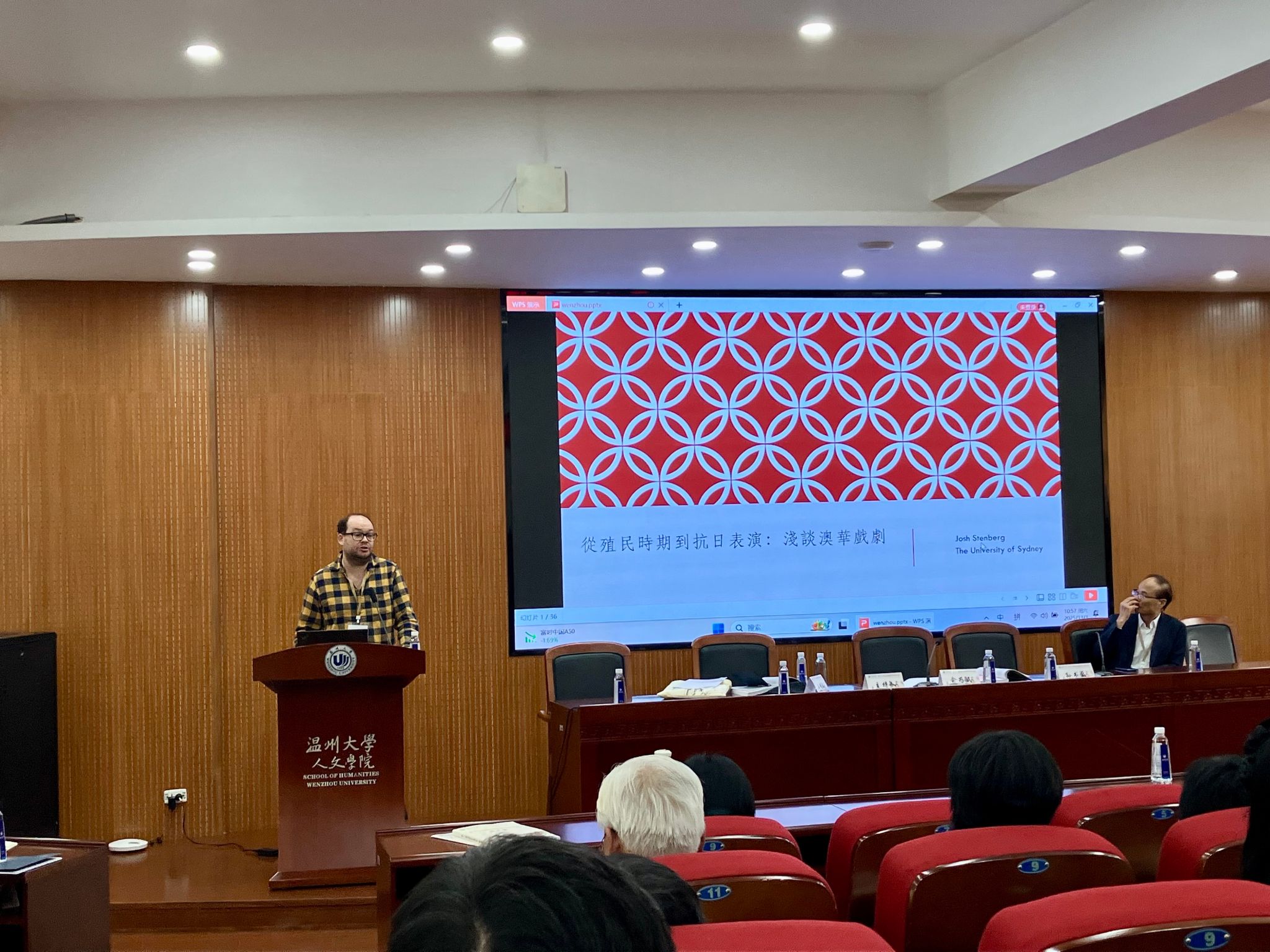 开幕式后由9428cn太阳集团古天乐文科资深教授俞为民教授主持本届大会主题发言,南京大学孙书磊教授与悉尼大学Josh Stenberg教授(中文名:石峻山)先后作主题报告,题目分别为《理念、领域与方法:钱南扬南戏研究的学术史意义》和《联邦到二战的澳华戏剧》