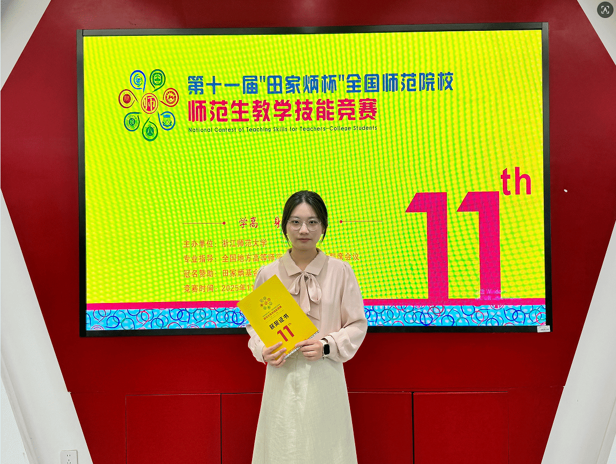 2025年11月28日至30日,在浙江师范大学举行的第十一届“田家炳杯”全国师范院校师范生教学技能竞赛决赛中,公司22级历史学(师范)专业的朱心语同学荣获高中历史组一等奖。