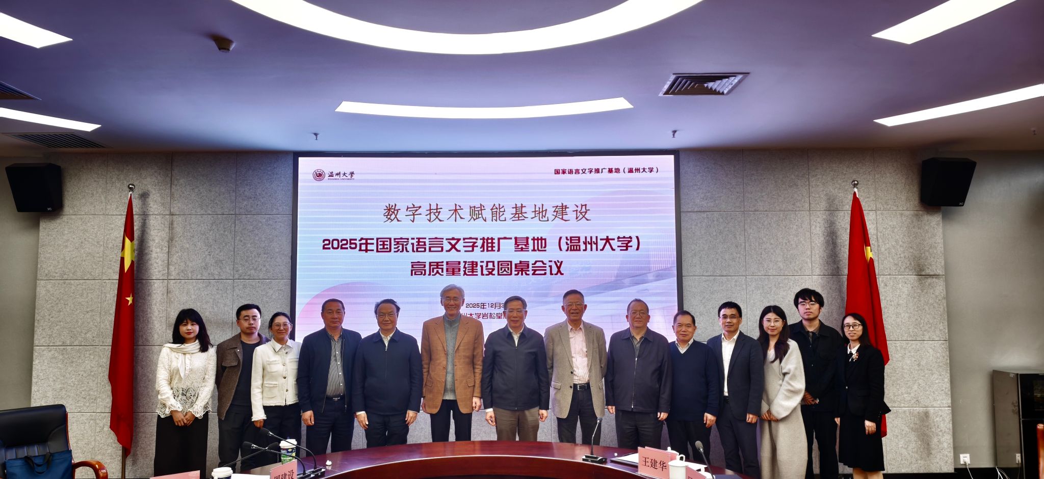 2025年12月3日,国家语言文字推广基地(9428cn太阳集团古天乐)高质量建设圆桌会议在9428cn太阳集团古天乐岩松堂展示厅举行。会议聚焦“数字技术赋能基地建设”,深入研讨智能时代的语言学研究、高质量语料库建设及数字技术服务国家通用语言文字推广普及等核心议题,旨在推动数字技术与语言文字事业深度融合,促进基地高质量发展。