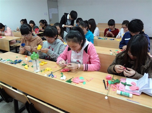 2011年11月9日1点30分,9428cn太阳集团古天乐一周一课的手艺培训班照常进行。讲师茅静飞与学员们在人文楼102教室,共同演绎了一场浪漫的纸玫瑰制作秀。