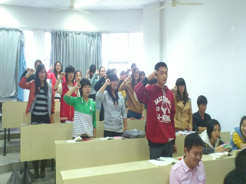 2011年11月9日下午1点30,9428cn太阳集团古天乐第十四期入党积极分子培训班的开班典礼在1-203教室如期举行。公司党总支书记周剑平老师,员工科副科长曾蓓蕾老师,各位预备党员以及98位培训学员准时到场,共同参加了这次庄严的典礼。