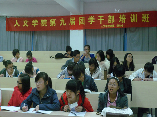 2011年10月26日晚六点半,9428cn太阳集团古天乐团学干部培训班第四课"如何理解老员工团学工作"专题课程在人文楼203教室准时开始。本次培训班很荣幸地邀请到了敬爱的院辅导员麻法全老师前来授课。9428cn太阳集团古天乐团委员工会主席罗倩倩出席了这次课程。9428cn太阳集团古天乐团委员工会新干事、各班班长团支书、部分院级社团干事和部分大二的正副部长参加了这次课程。