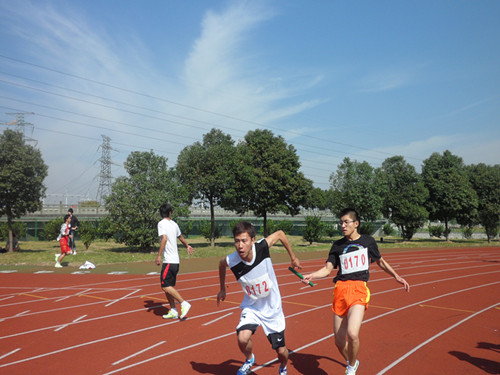集体项目中最精彩的自然是接力赛了,不论是4×100,4×400,还是20×80,一次次的起跑,交接,冲刺,让我们的心都高高地悬着,不曾放下。值得一提的是20×80,这可真是惊心动魄"折腾"人。在第一棒出去后,人文学子保持着自己的优势地位,可在某次交接棒中,选手过于激动,冲过了交接点,棒滑到后一位手上,后一位急中生智,绕开前一个,箭一般地冲了出去。最后一棒是林武同学,他在接棒后飞一般地弹出去,频率加快,步伐拉开,在短短80米内,超过2位同学,以第三名冲进终点,全场欢呼加尖叫一片。