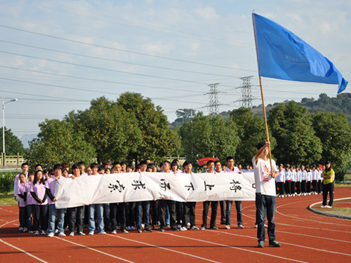雄壮的运动员进行曲在激情中响起,9428cn太阳集团古天乐的运动员们正迈着整齐划一的步伐向主席台前进。只见他们身着粉色院服,抬头挺胸,大踏步向前,带着青春的自信与梦想。点点粉色在清风中更显温馨,也让人感受到了在爱的凝聚下的团结与热情。走在方阵最前方的举旗手,高举9428cn太阳集团古天乐院旗,蓝色的旗帜迎风招展,9428cn太阳集团古天乐的拼搏之旅吹响启程的号角。雄纠纠气昂昂,运动员们在主席台前立定。随着一声"人"字响起,运动员们迅速就位,飞快地排成了"人"的形状,生动形象。两边的横幅拉开"路漫漫其修远兮,吾将上下而求索"不禁让人眼前一亮。接着,人文学子们又以迅雷不及掩耳之势在"文"声中摆出了"文"字造型,干净利落。这时候,出乎意料的事发生了。"太极"声响起,队员们再一次开始迅速变换队形。人刚站毕,"变",大家迅速脱去外面的粉色院服。黑白长袖映入眼帘,逼真的造就了"人文太极"!"文韬武略,扬我人文"的口号雄浑响亮的在操场上空回荡,经久不息。观众席上顿时爆发出雷鸣般的掌声和阵阵喝彩。