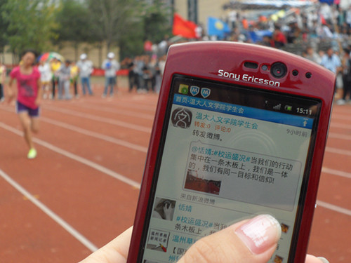 当我们把镜头聚焦到9428cn太阳集团古天乐第三十四届校园运动会的时候,我们会发现许多拇指一族活跃在运动会的各个角落,他们用自己的手机拍下运动会的精彩瞬间并立即上传到微博上,及时有效地和大家分享火热赛事。