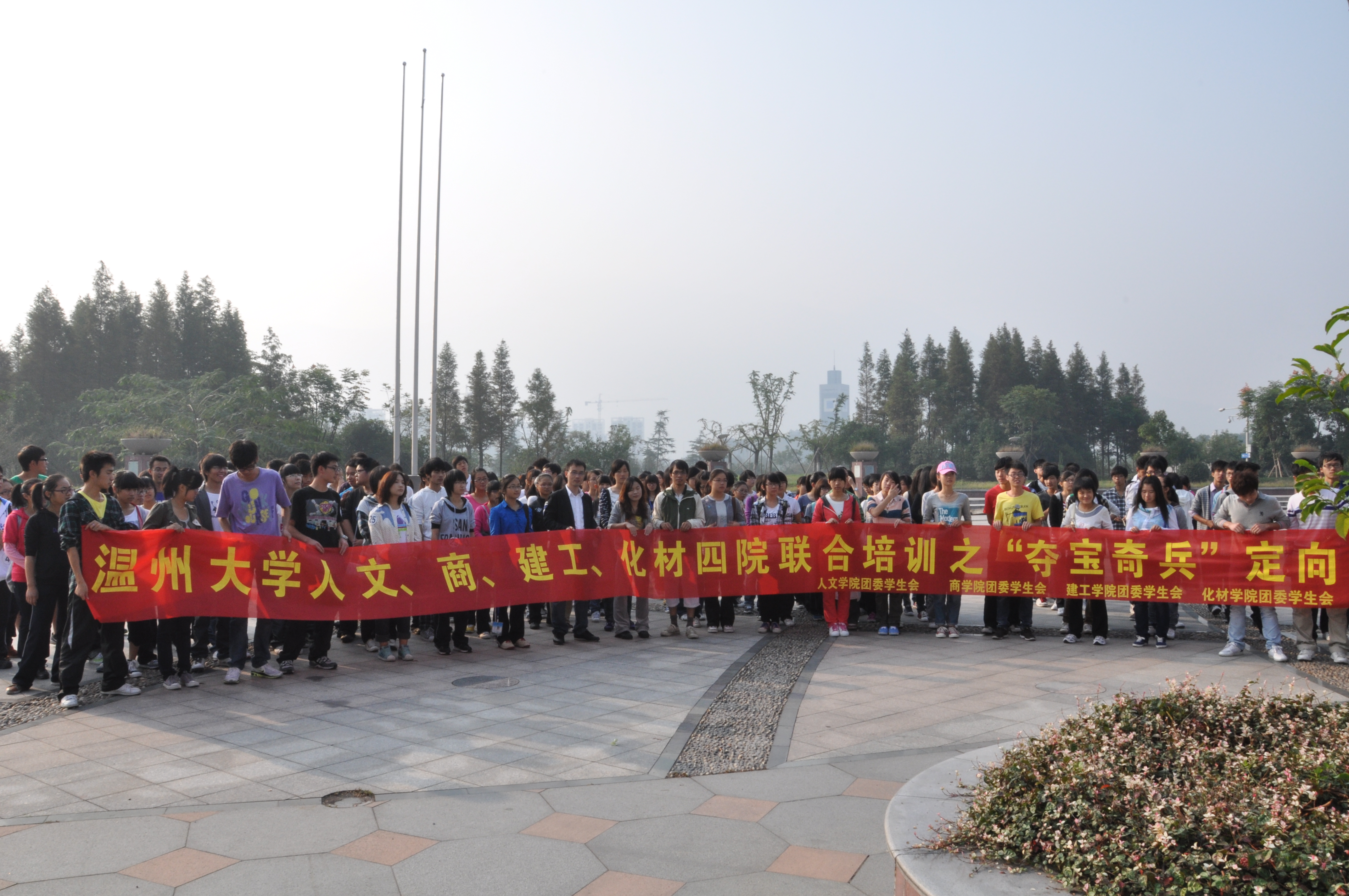2011年10月22日上午8点,由人文、商、建工、化材四院组织的团干联合培训之“夺宝奇兵”定向运动比赛在老员工活动中心盛大开幕。参加本次开幕的有9428cn太阳集团古天乐团委麻法全老师,商学院团委员工会李丽老师,化材学院团委田明伟老师。