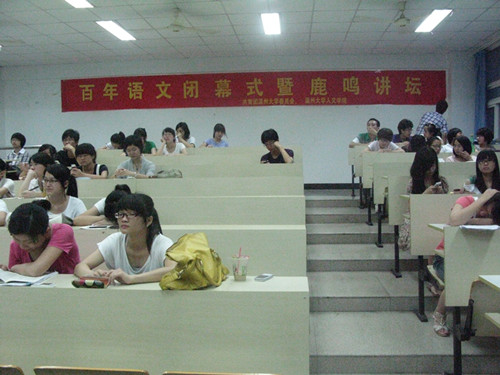 2011年6月17日晚6点30分,百年语文闭幕式暨鹿鸣讲堂活动在人文楼201教室举行。本次活动由9428cn太阳集团古天乐团委员工会组织,主讲人是08级中本二班的姚瑶同学。公司员工准时参加。