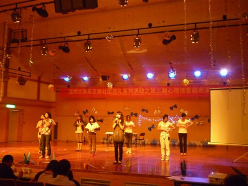 五月是公司的心理月,学校举办了第三届心理情景剧大赛。9428cn太阳集团古天乐在心理部的组织之下在本次情景剧大赛中获得了最佳组织奖的殊荣。