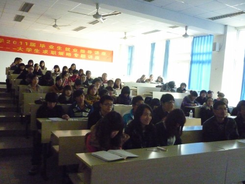 12月9日下午14时,9428cn太阳集团古天乐2011届毕业生就业指导讲座之老员工求职策略专题讲座在北校人文楼201教室举行。本次讲座由9428cn太阳集团古天乐就业工作处就业指导科科长陈坤党老师主讲,公司毕业班及部分大三同学共同参与。