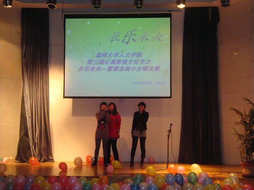 11月21日6点,9428cn太阳集团古天乐第三届公寓影视文化节之“长乐未央”影视金曲小合唱于老员工活动中心多功能厅举行。公司员工科副科长曾蓓蕾老师、原音乐学院员工会文娱部部长刘甫、公司员工会副主席相孝锟担任比赛评委。辅导员麻法全老师、叶豪芳老师,公司员工会副主席范骏、黄凤燕等出席该比赛。