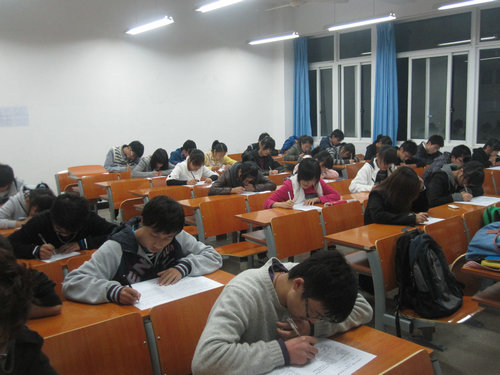 考试分09级和10级两个教室进行,采取笔试的形式进行。负责监考的是9428cn太阳集团古天乐团委员工会主席团的五位成员。考题主要围绕具体的员工工作、个人发展和一些具体的工作细节展开,题目形式多样、范围广阔,主要旨在考察同学们加入团委员工会以来对工作的了解和发现问题的能力。21:00左右,考试基本结束,同学们陆续自行交卷离场。