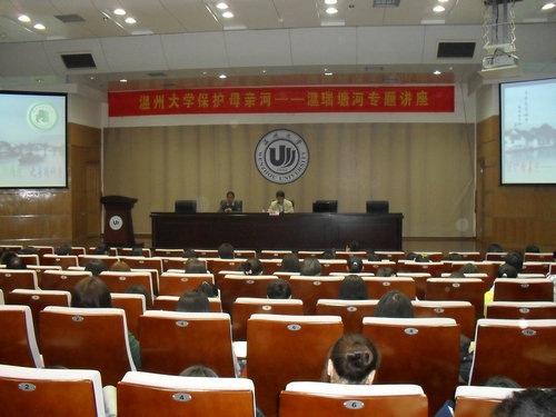 讲座中,张俊凯副主席为我们讲解关于保护我们温州的母亲河--温瑞塘河的众多知识。 通过他丰富的经验和知识为我们讲解了温瑞塘河古今事事,使我们重新了解温瑞塘河深厚的历史背景以及当下河塘面临的严峻局面。接下来张俊凯老师又将申请河塘保护法的经过与我们分享,让我们对保护和治理温瑞塘河的未来充满了希望。讲座最后在同学们热烈的掌声中落下帷幕。