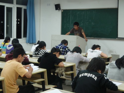 晚上18点40分,大一新生在员工会的组织下进入考场,考试正式开始。负责监考的是团委员工会的员工干部们。考场内秩序井然。同学们态度端正、神情严肃,考场内秩序井然,十分安静。20点10分左右,考试基本结束。
