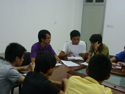 首先,员工会主席陈辉同学向大家简单介绍了接下来一段时间的迎新及团委员工会招新工作的安排。各部长依次汇报了本学期的部门工作计划。而后,麻老师在讲话中对大家新一学期的工作提出了几点意见和建议,包括整合精简活动、体现学院特色、增进内部团结、加强学习型研究型等。