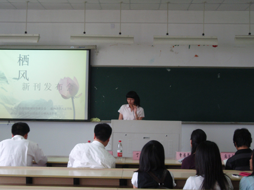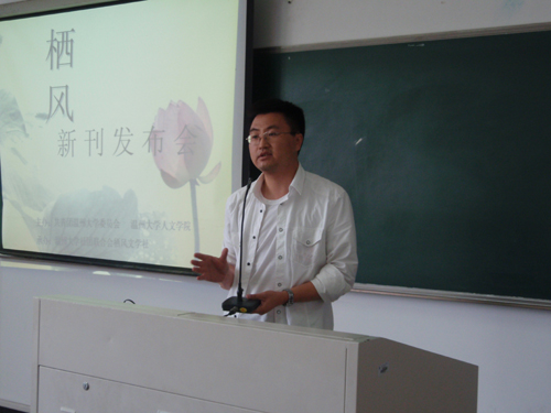 首先,由孙良好老师讲话。孙老师以《栖风》指导老师的身份,提出《栖风》所应遵循的真实、自由、优美的理念,并希望《栖风》能够拓宽视野,走出校园。接着,丁经理与大家一起探讨文学的创作理念,突出了“思想”和“词汇”的重要性。而后,栖风文学社社长沈阳阳同学向大家阐述了改版原因和改版精神。姚嘉雯同学则由栖风谈及了温大校园文化的现状和校园刊物的生存与发展问题。《栖风》改版主编陈秀秀同学介绍了改版的具体情况。最后,丁治民经理正式向大家宣布《栖风》改版。