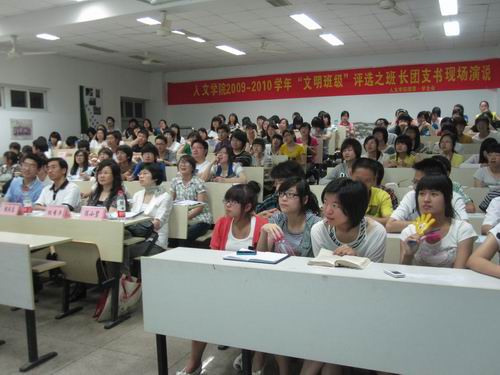 本次活动共有6个参赛班级,分别是08、09历本、中本及广告本几个温馨的大家庭。班长团支书条理清晰的演说、精美生动的班级风采展示以及现场啦啦队热情洋溢的气氛将比赛推向一个又一个高潮。最后,教师评委、学风建设委员会成员以及大众评审团都秉承着公平、公正、公开的原则进行现场投票,活动取得了圆满成功。