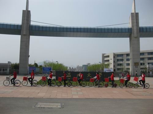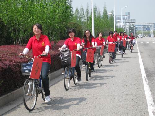 活动开始后,大家骑着贴上活动口号的自行车,途径温医、商务中心、南校、温职、北校,绕着大学城宣传了一周,引来了路上同学们的广泛关注。宣传过后,员工党员们在北校区1号楼213会议室进行座谈,主要针对现实生活中的“低碳现象”进行讨论。座谈会上,同学们罗列了各种体现“低碳”的生活习惯,各抒己见,并作出新的设想,气氛十分融洽。