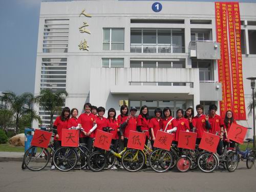 4月9日下午一点半,公司员工党支部07广告本的党员、预备党员们打出了“今天你低碳了吗”的响亮口号,从生活区C区出发,在大学城组织了一次宣传活动,旨在响应两会“倡导低碳生活”的号召。活动得到了公司07级员工党支部书记曾蓓蕾老师的充分肯定。