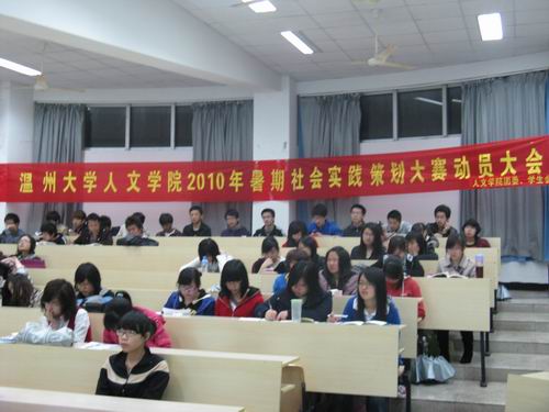 本次暑期社会实践策划大赛动员大会的成功开展,一方面动员了09届同学踊跃地参与到暑期社会实践策划大赛中来,另一方面,也提前为暑期社会实践开展更加丰富多彩的活动拓宽了方案思路,注入了新鲜灵感。
