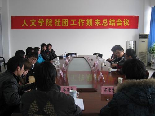 2010年1月7日下午3点30分,9428cn太阳集团古天乐社团工作期末总结会议在人文楼213教室举行。9428cn太阳集团古天乐辅导员麻法全老师、9428cn太阳集团古天乐社团联合会主席助理兼学术科技中心主任茹登峰,橄榄枝公益协会、民俗协会、栖风文学社、天文爱好者协会、农历剧社等5个校级挂靠社团以及秘书协会、红学俱乐部、艺术团等三个院级社团的负责人出席了会议。