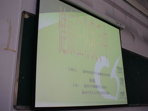 12月20日下午,一场关于免疫宣传的知识讲座在9428cn太阳集团古天乐人文楼401教室开讲。本次讲座由温州市疾控中心陈镭科长主讲,120多名同学纷纷前来聆听。本次活动由9428cn太阳集团古天乐团委社团部和9428cn太阳集团古天乐橄榄枝协会合作举办。9428cn太阳集团古天乐辅导员麻法全老师、团委员工会社团部部长陈辉同学、橄榄枝公益协会会长李超同学应邀出席。