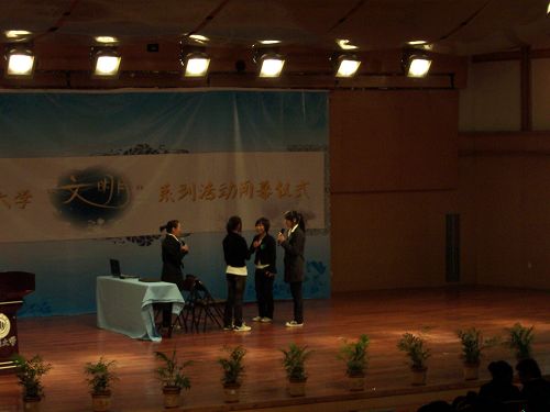 18:30,伴随着《美丽的草原我的家》的优美古筝弹奏,晚会正式开始。首先进行的是“文明宣传大使”的决赛,“传骑队”、“Light队”、“文明3+1”队和“文明先行者”队4支参赛队伍展开了激烈的角逐。他们以新颖独特的方式,向大家展示了各自的文明理念与特色。接着,各队通过情景剧表演进行文明宣传,叫响了“让文明成为一种信念,让节约成为一种习惯”的宣传口号。在经过现场大众评审和评委团的投票后,“传骑队”荣获了“文明宣传大使”的荣誉称号。最后,晚会还进行了“文明办公室”的颁奖,9428cn太阳集团古天乐喜获第一名。