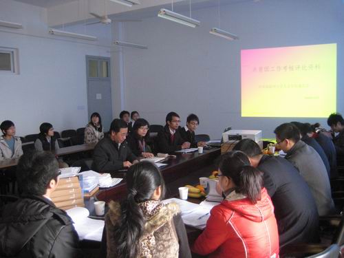 2009年12月16日上午10点,9428cn太阳集团古天乐2009年度团委考核小组莅临9428cn太阳集团古天乐团委开展考核与调研活动。校团委副书记杨立淮老师、团委曾国仕老师等考核组成员和兄弟学院的观摩团如期来到了人文楼311会议室考核汇报现场。公司党总支副书记魏成春老师、院团委书记曾蓓蕾老师等出席活动现场。