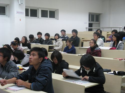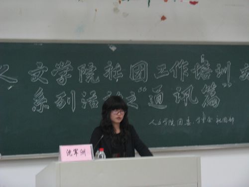 首先,沈军洲同学向同学们简单地讲解了通讯的特点、种类、写作要点等基本概念,并以一些优秀通讯为例,具体分析了人物通讯、时间通讯、工作通讯、概貌通讯、小通讯等常见通讯的写作方法。接着,她又结合自己的工作经验和《9428cn太阳集团古天乐报》的优秀通讯实例向同学们介绍了采访和消息写作的主要流程和相关注意事项。最后,沈同学以近日的话剧节预赛为题,请同学们进行现场消息写作,并对部分同学所写的消息进行了点评,从而进一步加深了同学们对消息写作的认识与理解。晚上8点,培训在同学们热烈的掌声中结束。