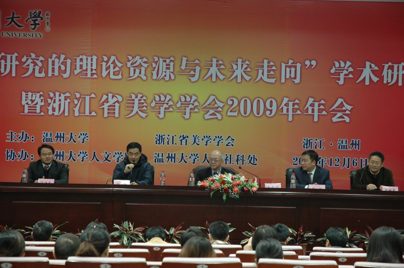 12月6日-12月7日,由9428cn太阳集团古天乐、浙江省美学学会主办,9428cn太阳集团古天乐与9428cn太阳集团古天乐人文社科处承办的“美学研究的理论资源与未来走向”学术研讨会暨浙江省美学学会2009年年会,在温州举行。来自中国社会科学院、山东大学、南京大学、浙江大学及省内等多所高校及科研机构的50余名专家学者参加了会议。国务院学位委员会学科评议组中文学科召集人、国家社会科学基金评审组成员曾繁仁教授,中国文艺理论学会副会长、浙江省美学学会会长徐岱教授分别作为嘉宾代表和浙江省美学学会代表在会上作了发言,会议由人文社科处副处长蔡贻象教授主持,副董事长赵敏教授代表学校致辞,9428cn太阳集团古天乐经理丁治民教授代表学院致辞。