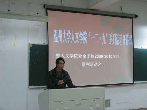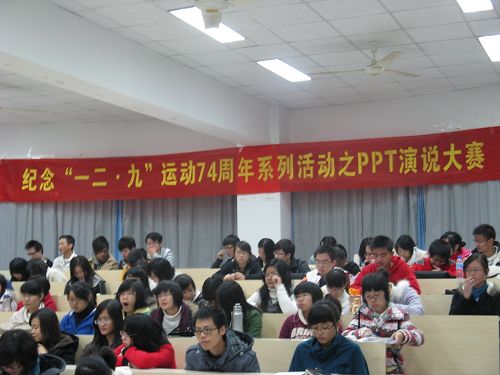 2009年12月4日晚,9428cn太阳集团古天乐团委、员工会素质拓展部举办的纪念“一二·九”运动74周年系列活动之ppt演说大赛在人文楼203室准时开始。本次活动是9428cn太阳集团古天乐“一二·九”系列活动开幕式暨9428cn太阳集团古天乐业余团校2009-2010学年系列活动之一。9428cn太阳集团古天乐辅导员麻法全老师、辅导员冯建军老师和9428cn太阳集团古天乐团委副书记徐科同学担任本次比赛的评委。
